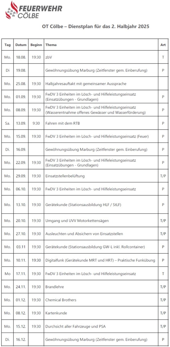 Sofern Interesse an der Mitarbeit in der Einsatzabteilung der Feuerwehr Cölbe besteht, können Sie gerne einfach zum Beginn der jeweiligen Übungsstunde zum Feuerwehrhaus kommen (Hebertstrasse 4). Auch eine Kontaktaufnahme mit dem Mitarbeiter der Gemeinde Cölbe, der wochentags im Feuerwehrhaus in Cölbe arbeitet (8-16 Uhr), ist möglich. Bitte haben Sie aber Verständnis, dass er zur Ausübung seiner Pflichten nicht immer im Feuerwehrhaus anwesend ist.